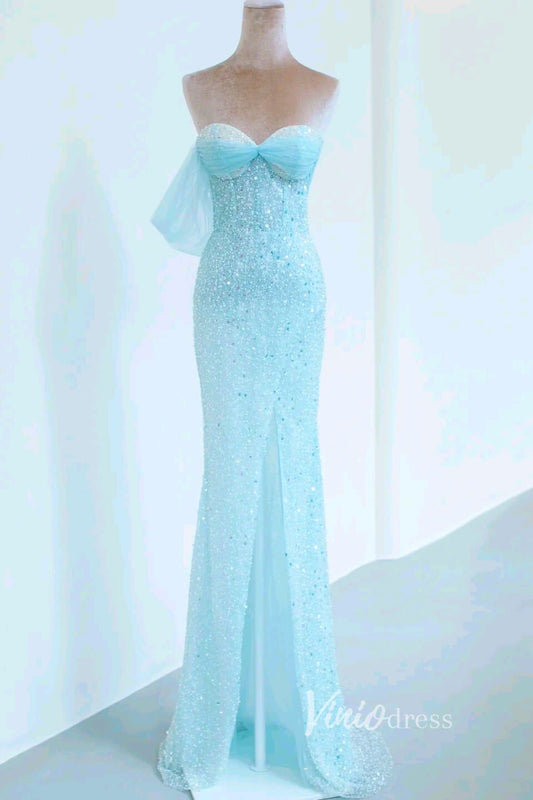 Tiffany Blue Beaded Prom Dresses Removable Ruffled Skirt Formal Gown FD3431