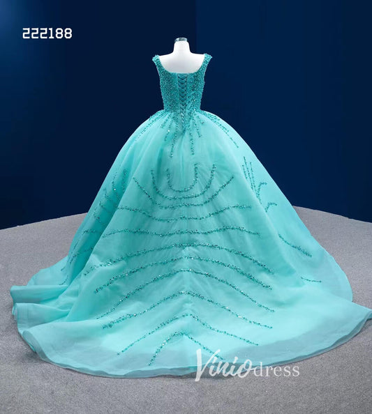 Turquoise Blue Sweet 16 Ball Gown Wedding Dresses Cinderella Debut Dresses 222188