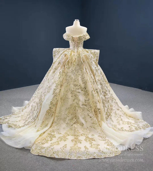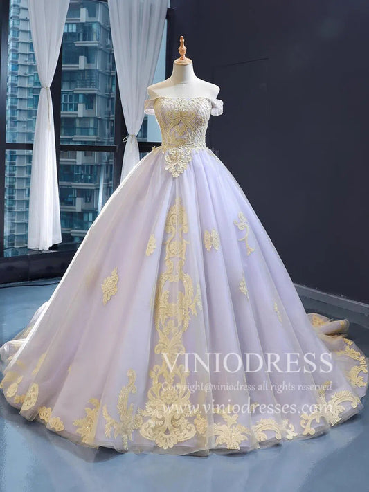 Vintage Gold Wedding Dresses Off the Shoulder Cinderella Ball Gown 67159 viniodress