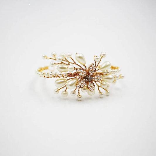 Vintage Gold Pearl Bridal Cuff Bracelet AC1094