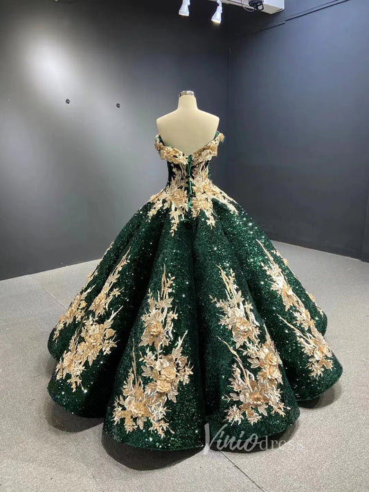 Vintage Gold Embroidery Quinceanera Dresses with Removable Sleeves FD1668 viniodress