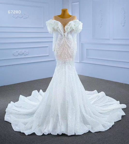 Vintage Mermaid Pearl Wedding Dresses with Sleeves 67280