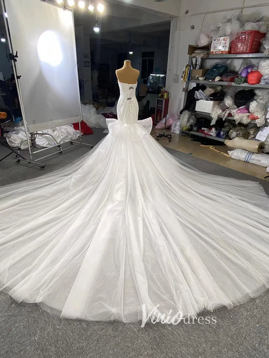 White Tulle Mermaid Wedding Dresses Cathedral Train 66765