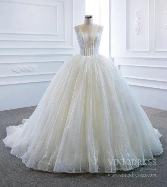 Wide Strap Beaded Ball Gown Lace Wedding Dresses VW1463
