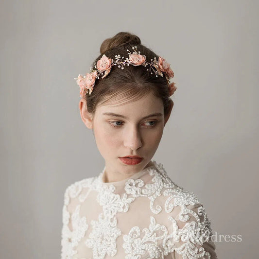 Blush Pink Floral Headband with Crystals Viniodress ACC1114