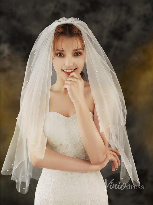 Blusher Veil Pearl Bridal Veil Viniodress TS1924