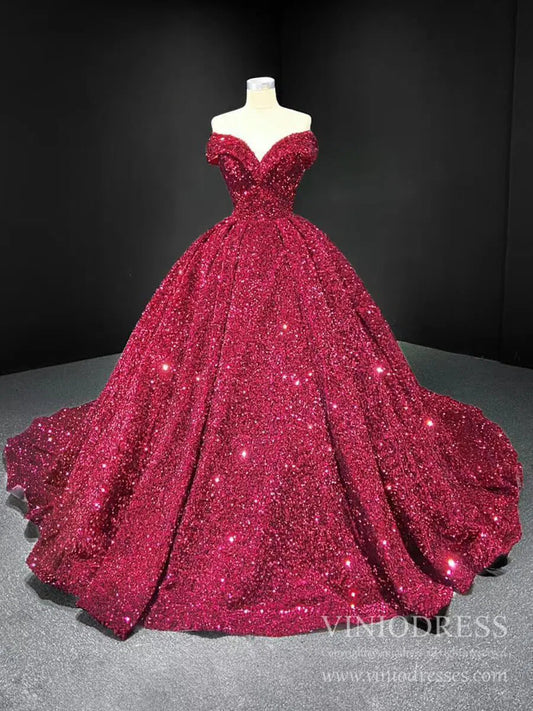Shiny Sweet 16 Sequin Gowns Off the Shoulder Debutante Ball & Quinceanera Dresses 66991 viniodress