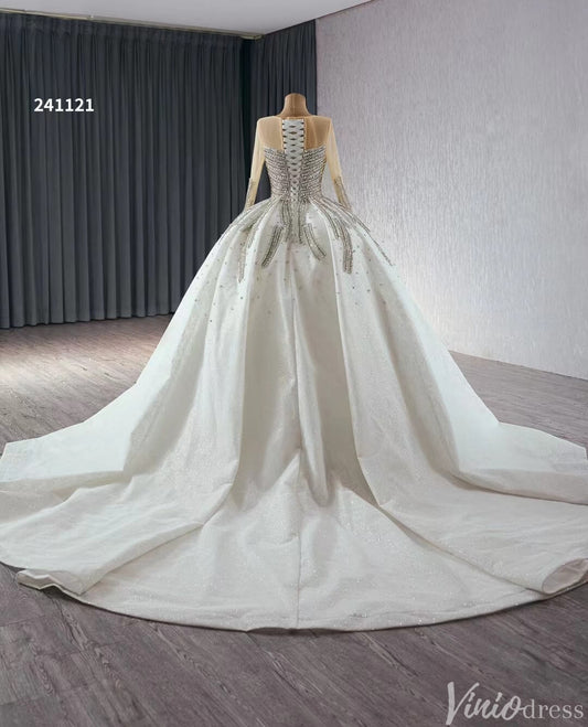 Modest Luxury Rhinestones Balll Gown Wedding Dresses with Sleeves 241121