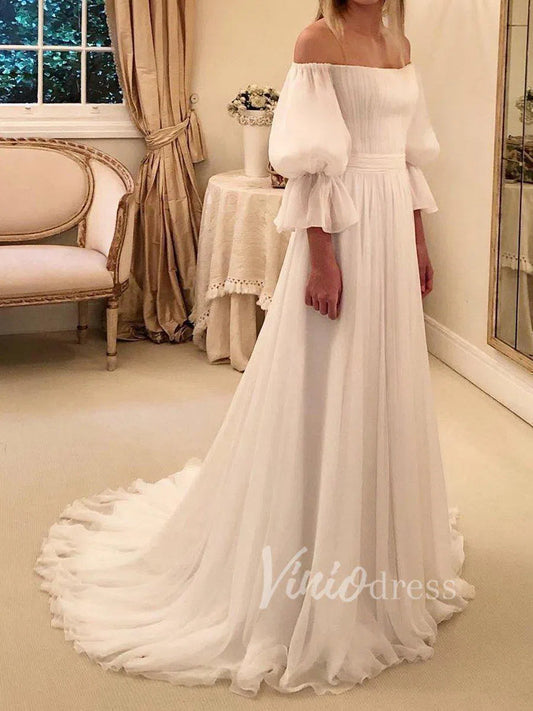 Elegant Chiffon Beach Wedding Dresses with 3/4 Sleeves VW1208