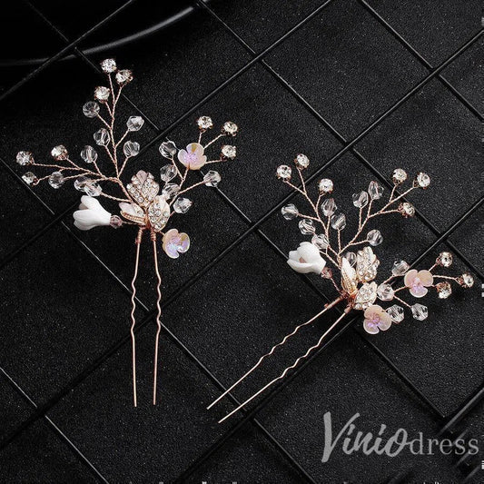 Rose Gold Crystal Sprig Bridal Comb & Hairpins Viniodress ACC1154