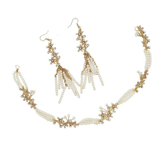 Vintage Pearl Drop Eearrings and Headband Set AC1101