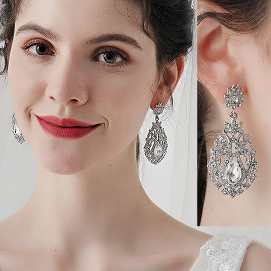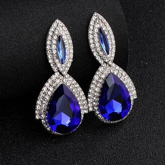 Teardrop Stone Backdrop Necklace & Earrings Set Viniodress AC1072