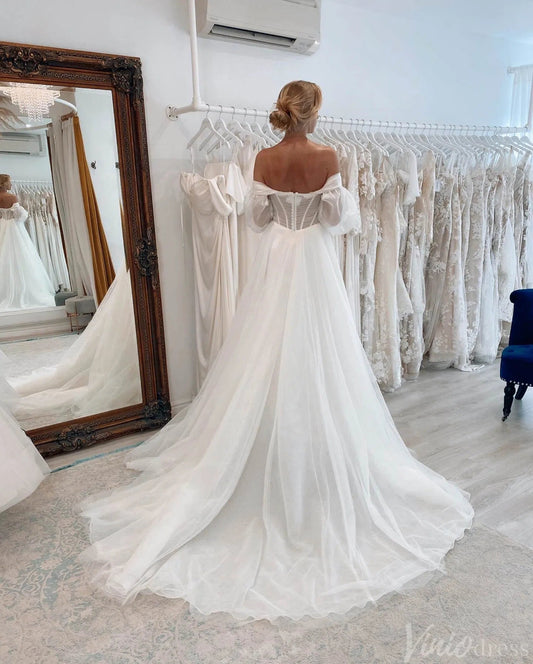 Ivory Strapless Sweetheart Wedding Dresses with Slit Removable Sleeve Bridal Gown AW1002