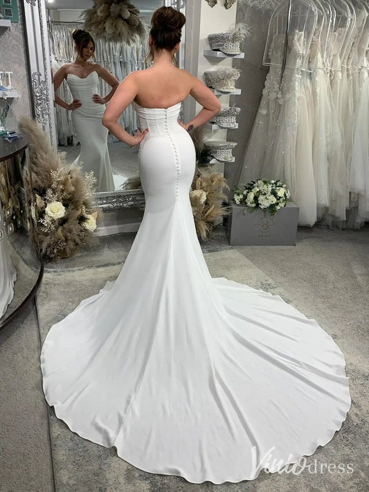 Modern Crepe Mermaid Wedding Dress with Sweetheart Neck, Draped Bodice, Chapel Train – MN122
