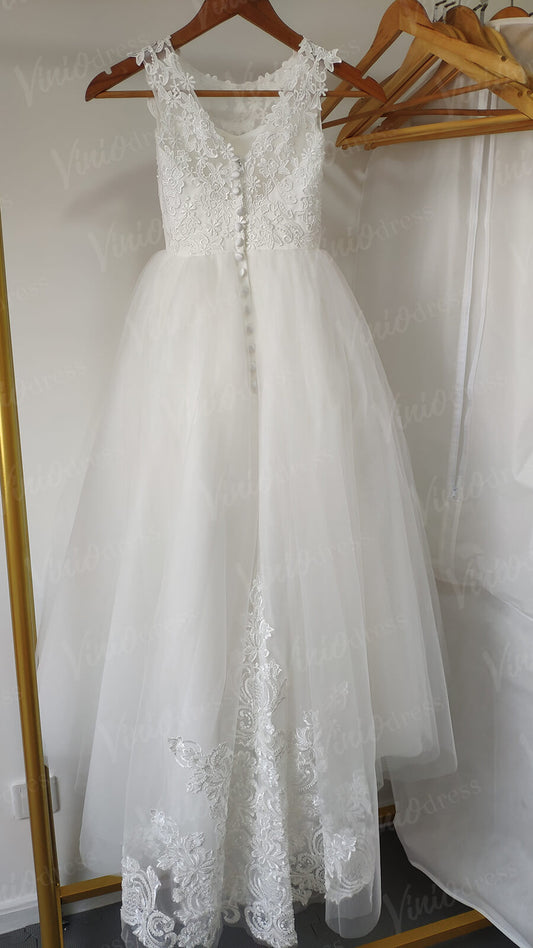Cute Ivory Lace Princess Flower Girl Dresses with Long Train GL1031