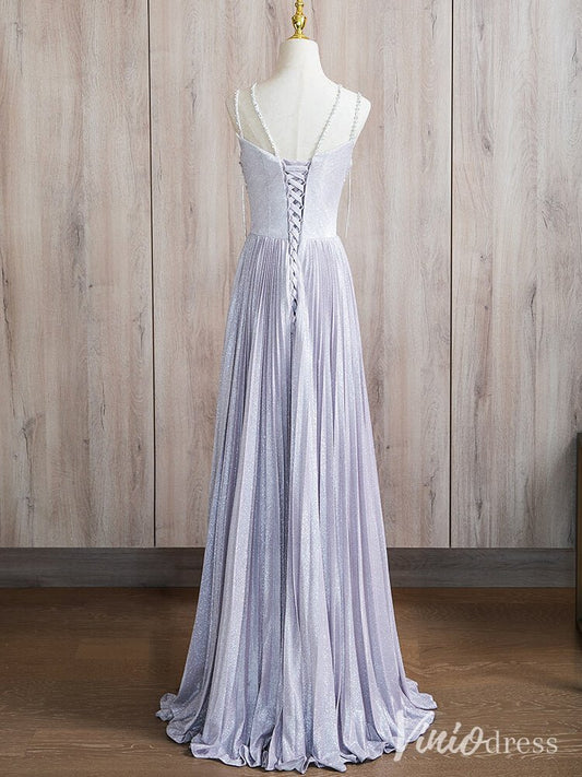 Lavender Shimmering Sheath Prom Dresses Beaded String Spaghetti Strap Evening Dress AD1370