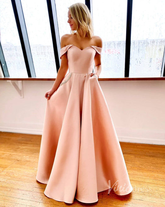 Off the Shoulder Yellow Satin Prom Dresses with Pockets FD2854