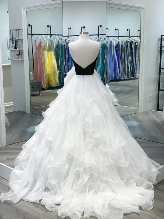 Ivory White Layered Ruffle Prom Dresses Strapless Velvet Bodice Evening Gown FD3049