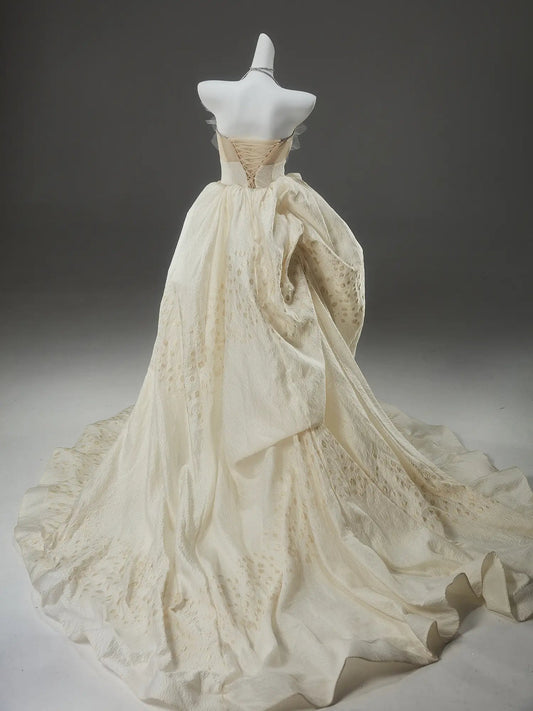 Champagne Jacquard Prom Dresses Floral Strapless Quinceanera Dresses SU022