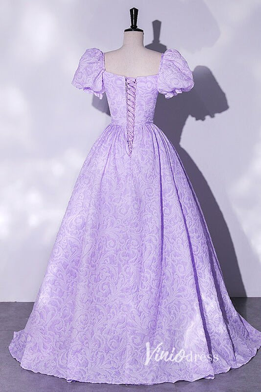 Short Puff Sleeve Lilac Jacquard Prom Dresses Square Neck Ball Gowns FD2462