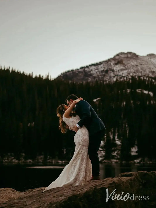 Mermaid Lace Wedding Dresses Backless Boho Wedding Dress Viniodress VW1118