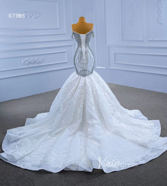 Luxury Ruffled Beaded Mermaid Wedding Gown 67354 VINIODRESS