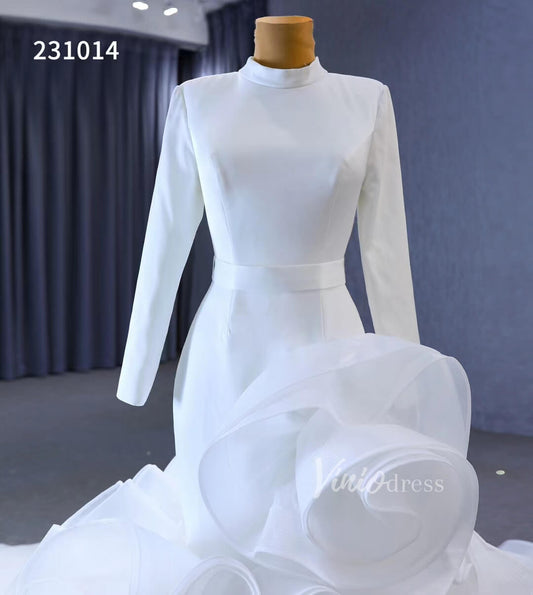 Elegant White Mermaid Ruffle Wedding Dresses with Long Sleeves 231014