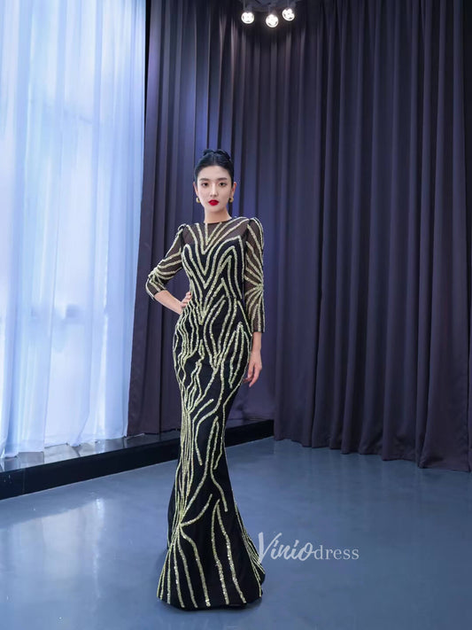 Gold Beaded Black Wedding Dresses with Detachable Overskirt 67573