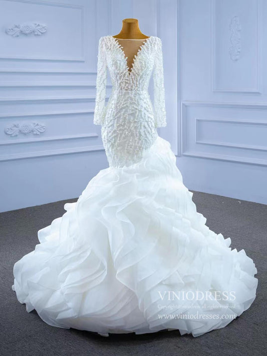Long Sleeve Pearl Wedding Dresses Mermaid Long Sleeve Bridal Gown 67269