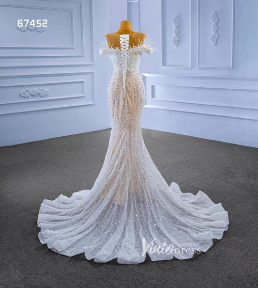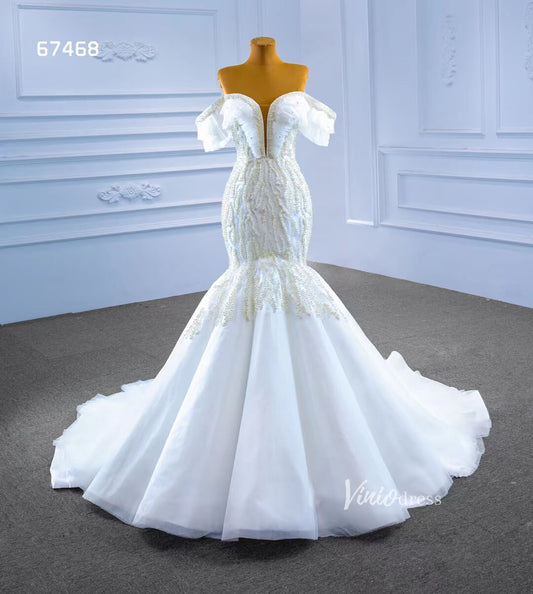 Pearl Mermaid Wedding Dresses Off the Shoulder Trumpet Bridal Gown 67468