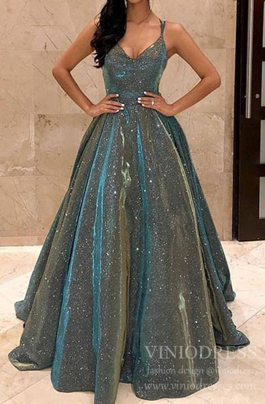 Sparkly Long Prom Dresses Spaghetti Strap Formal Dress FD1777
