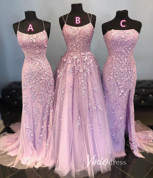 Long Lavender Lace Prom Dresses Lace-Up Back FD1265B