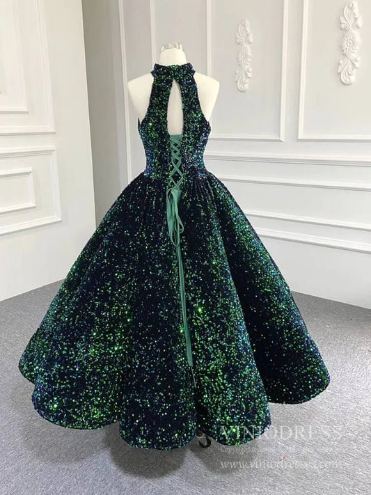 Midi Cocktail Dresses for Women Shiny Green Prom Dress 66991