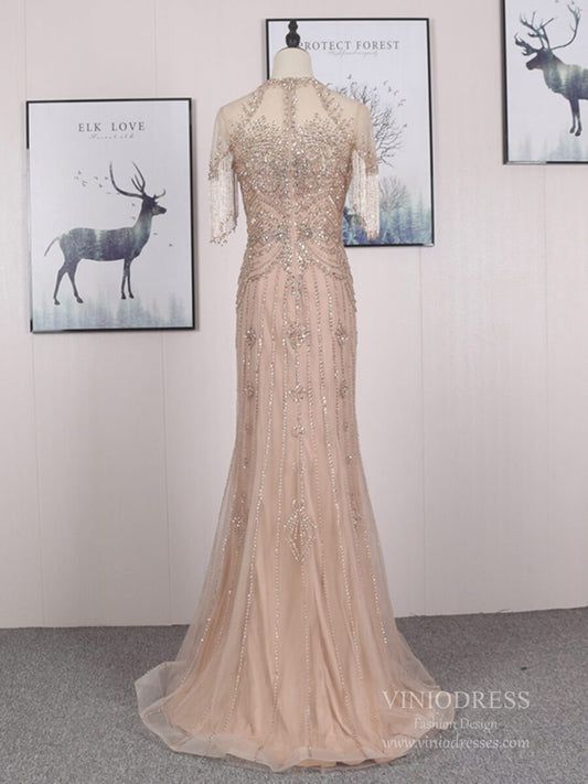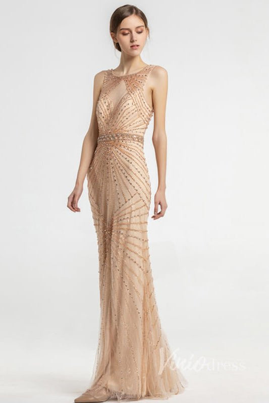 Light Gold Beaded Prom Dresses Vintage 1920s Evening Dress FD2483