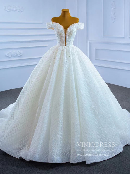 Off the Shoulder Lace Wedding Gown Pearl Wedding Dress VW2039
