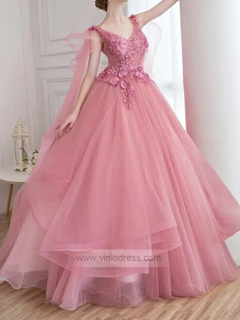 Rose Pink Quinceanera Dress Cape Sleeve Sweet 15 Dress FD1012 viniodress