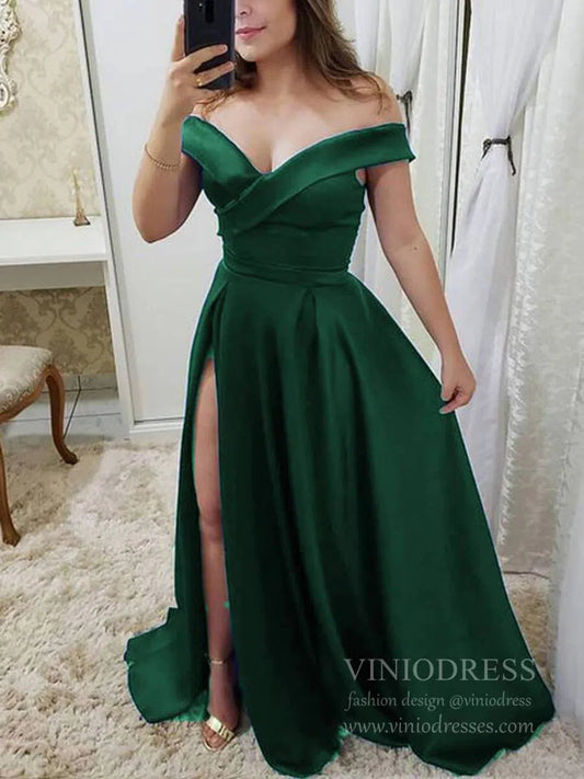 Off the Shoulder Simple Prom Dresses with Pockets FD1693