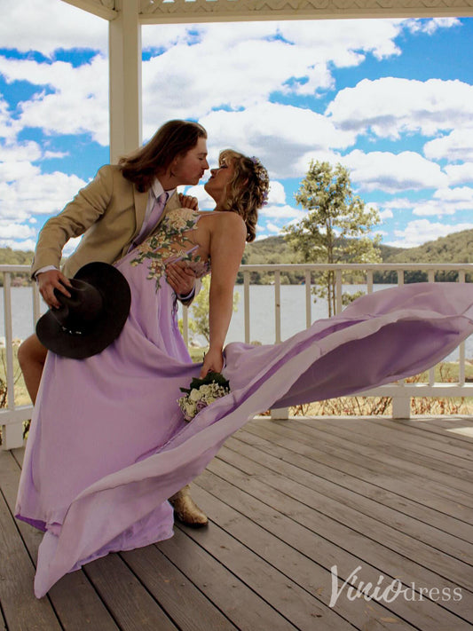 Lilac Floral Embroidered Prom Dress with Slit & Corset Back – FD6122