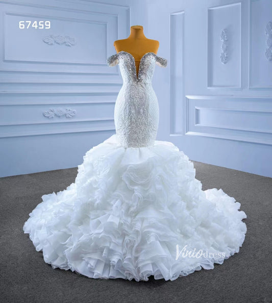 Off the Shoulder Mermaid Wedding Dresses Ruffled Gown 67192