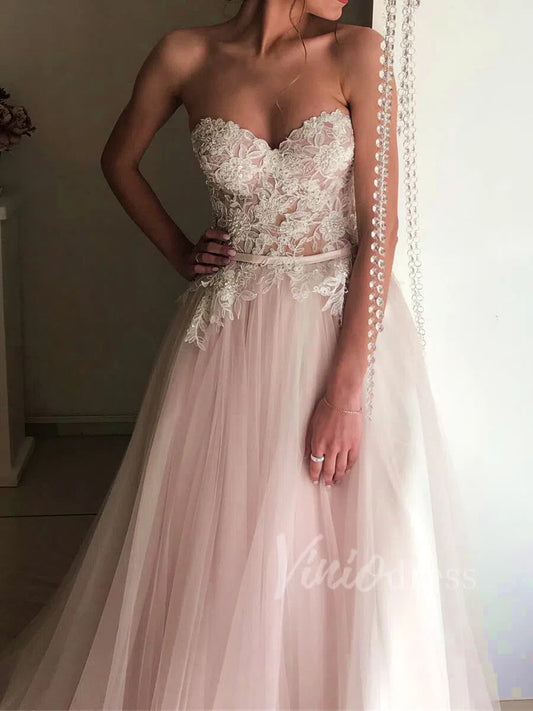 Strapless Beaded Pink Country Wedding Dresses VW1276