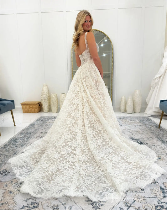 Plunging V-neck A-line Wedding Dresses Ethereal Lace Country Bridal Dresses VW1861
