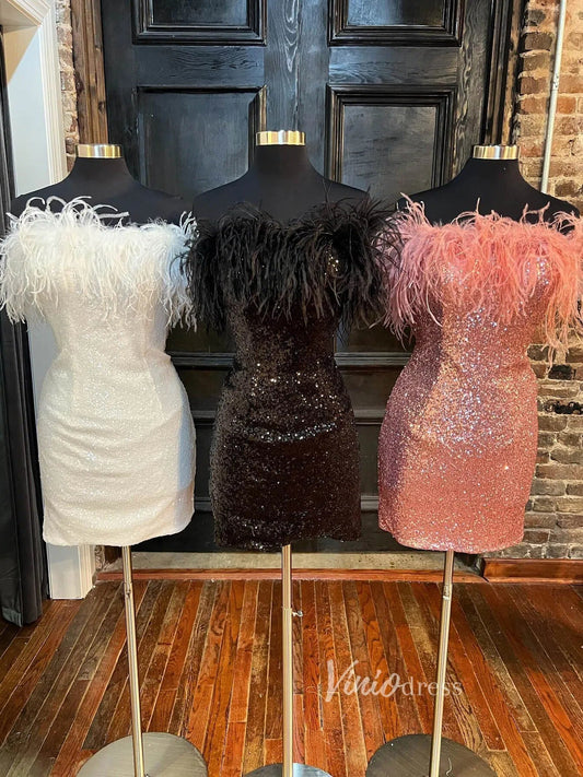 Bodycon Sequin Homecoming Dresses Off Shoulder Feather Cocktail Dress SD1514