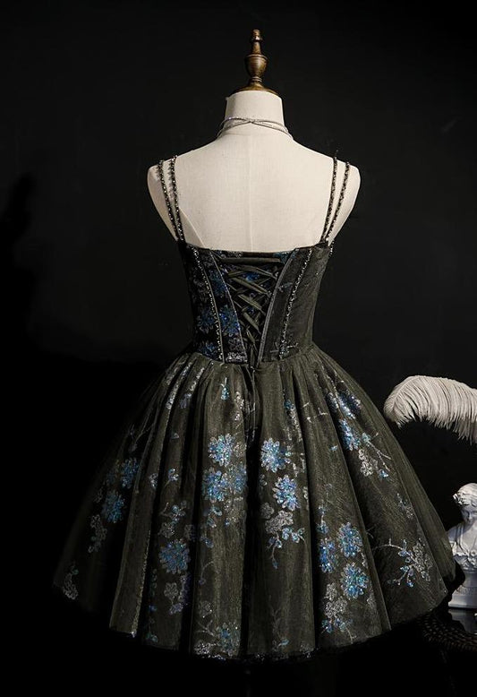 Dark Black Gray Lace Homecoming Dresses Sparkly Beaded Hoco Dress SD1374