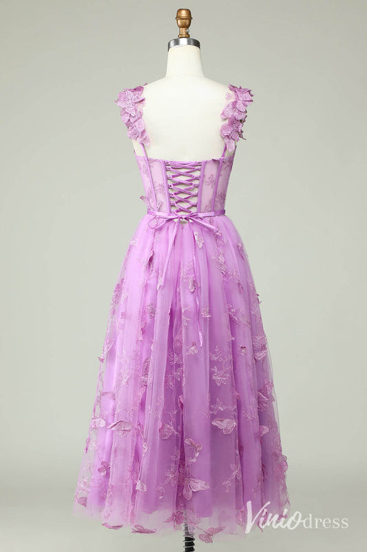 Lavender Butterfly Spaghetti Strap Homecoming Dresses Lace Sheer Back to School Dress S24081