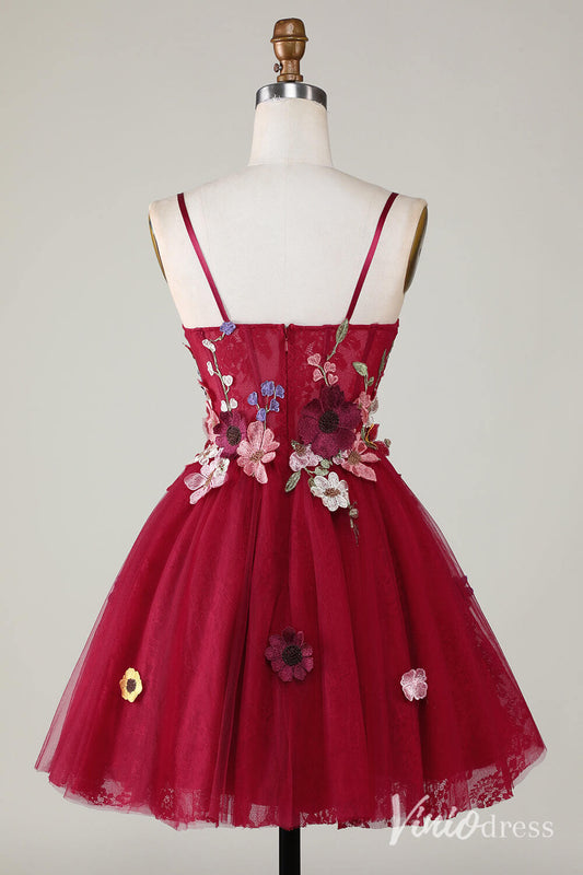 Red Floral Spaghetti Strap Homecoming Dresses Lace Applique Back to School Dress S24082
