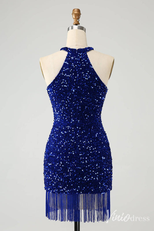 Blue Sequin Homecoming Dresses Halter Neck Tassels Bodycon Dress S24002