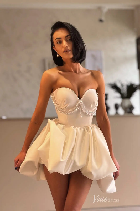 Glamorous Strapless Sweetheart Short Bridal Dress with Pearl Corset Bodice & Bubble Skirt – BP002