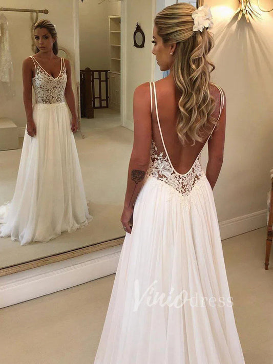 Spaghetti Strap Boho Wedding Dresses Chiffon Rustic Wedding Gown VW1199