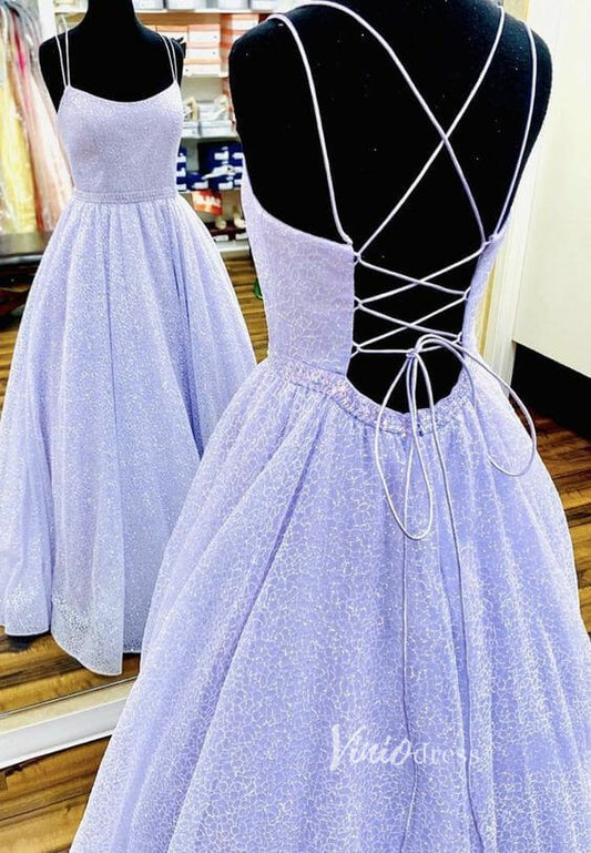 Spaghetti Strap Lavender Lace Prom Dress Long with Pockets FD2653
