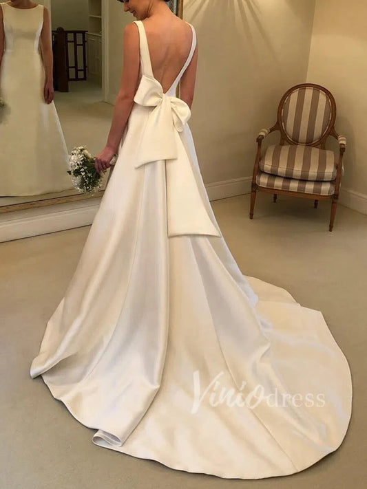 Simple Backless Classy Wedding Dresses with Bow VW1257